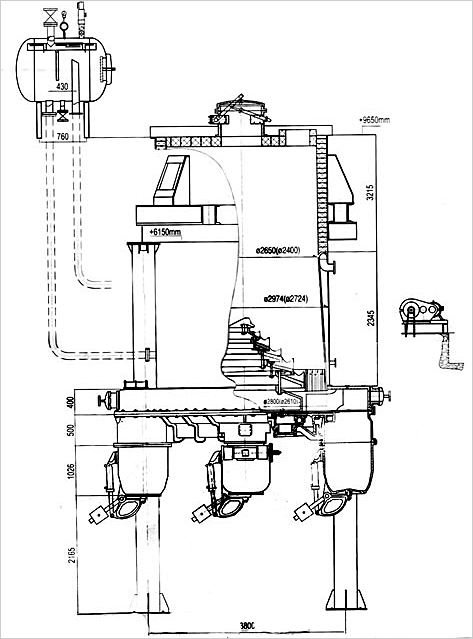 山東祥友化工機械有限公司是原博山化工機械廠改制后專業生產煤氣發生爐的廠家。是原化工部、省化工廳定點生產廠家,是山東省第一家生產煤氣發生爐的企業。公司具有豐富的生產、加工、技術改造等經驗。目前,隨著化肥行業生產能力的擴大,煤氣產量已遠遠不能滿足現狀,我公司在廣泛征求全國各家用戶的建議基礎上,集 30 余年技術經驗,在原有爐型的基礎上進行了改造挖潛,開發研制了 GZ Ø2800( 錐形 ) 夾套煤氣發生爐,其主要特點性能如下 , 請參考: • 該爐型是在原 Ø2650 基礎上改造而成,在原有的傳統系統、底盤總成部分,爐體、框架、支柱不變的情況下設計而成,采用錐形夾套方案,解決了灰渣層風阻大、邊風不均,氣體擴散空間小的缺點,有效提高了蒸汽分解率,煤氣的產量和質量都有了顯著的提高。 • 爐篦是煤氣爐的關鍵設備,根據 Ø2800 煤氣爐的實際情況及爐內各層次對風量不同要求,合理設計了 LJF-7 型(七層)爐篦。同時灰倉夾套采用“ T ”型環圈板及加強筋連接。 • 改進后的Ø2800 煤氣爐關鍵是流炭問題,解決該問題的辦法是把原 Ø2650 灰倉所設防流炭結構上移至夾套上部兩個下渣口部位,完全解決了流炭現象。爐渣過渡區保持在 200mm 左右,安息角為 32 ℃左右,破渣條為上窄下寬形狀,整體構成了二級防流炭結構。 • 夾套出氣口改為上出口,以解決蒸汽餾水出氣阻力,下封頭采用平焊法蘭結構,以減少下封頭侵蝕,上行煤氣出口改為頂側出氣( DN800 ) • 主要更換零件如下:( 1 )錐形夾套 ( 2 )箱形龍犁 ( 3 )新型爐篦 • 技術參數: 爐膛直徑 Ø2800 爐膛橫斷面積 6.2M2 爐篦通風面積內風道 0.90M2 進風口直徑 Ø900MM 夾套壓力 0.2mpa 夾套受熱面積 21M2 爐篦高度 1600mm 出氣口直徑 Ø800mm 產氣量 6500-9000m3/h 傳動電機功率 7.5KW